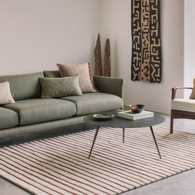 Harley is a striking, linear patterned design inspired by the bands of pattern and colour taken from ceramic artist Kyra Cane's pots. The introduction of contrasting yarns gives this rug a luxurious appearance.