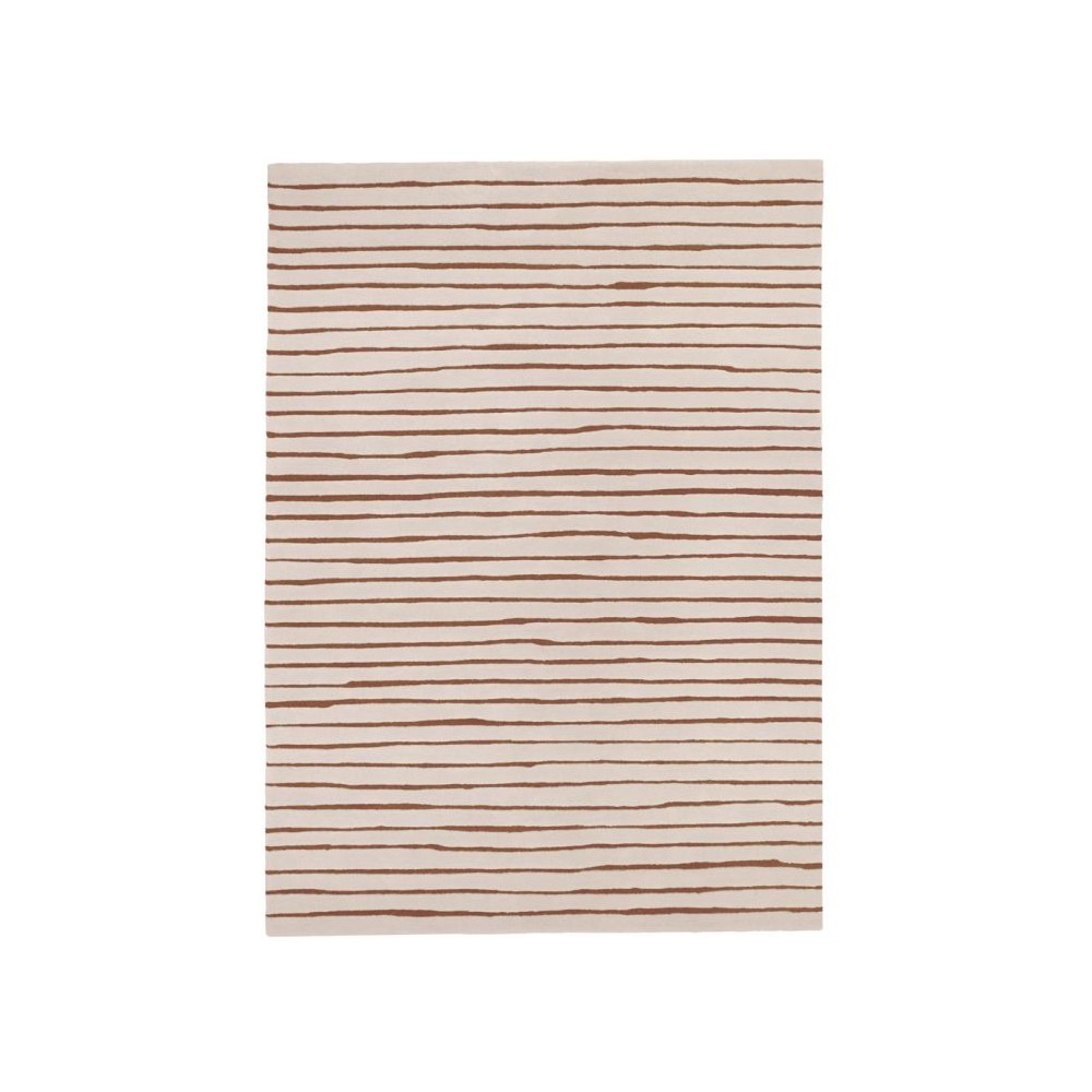 A luxuriously deep, cut and uncut pile of organic stripes create a graphic design full of character and texture. Celebrating craftsmanship, the rug is hand tufted from natural wool and hand carved creating additional depth and dimension.